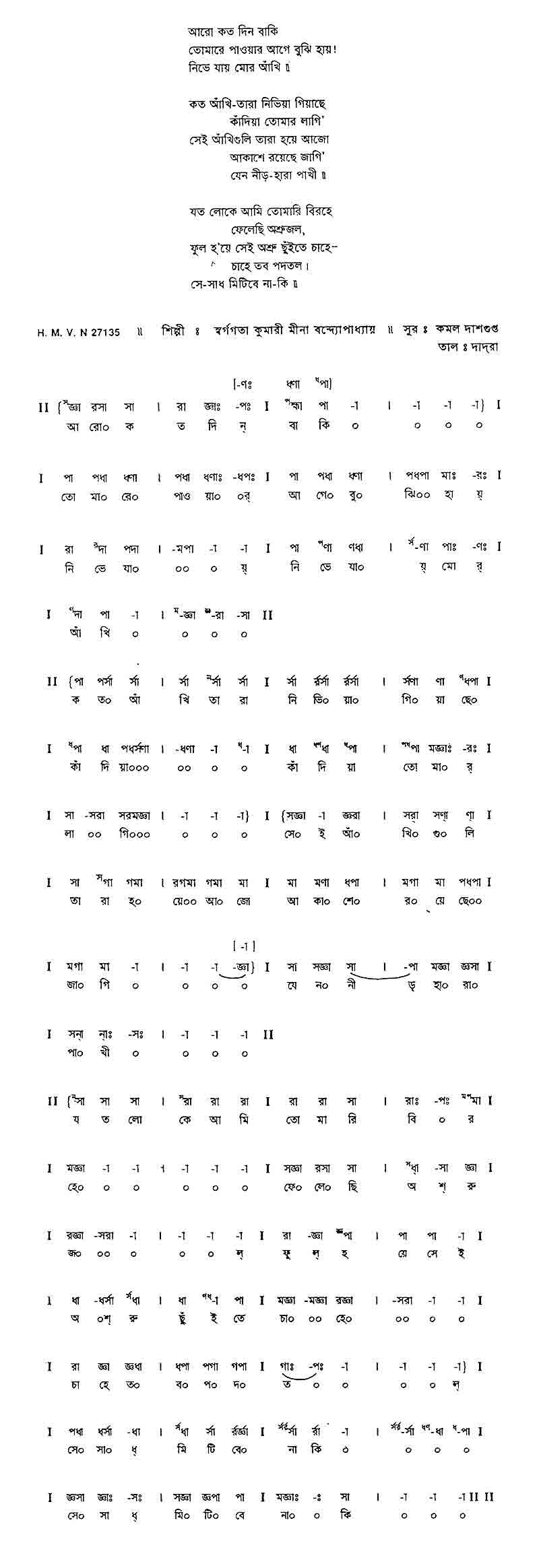কত আখি-তারা নিভিয়া গিয়াছে কাদিয়া তোমার লাগি'