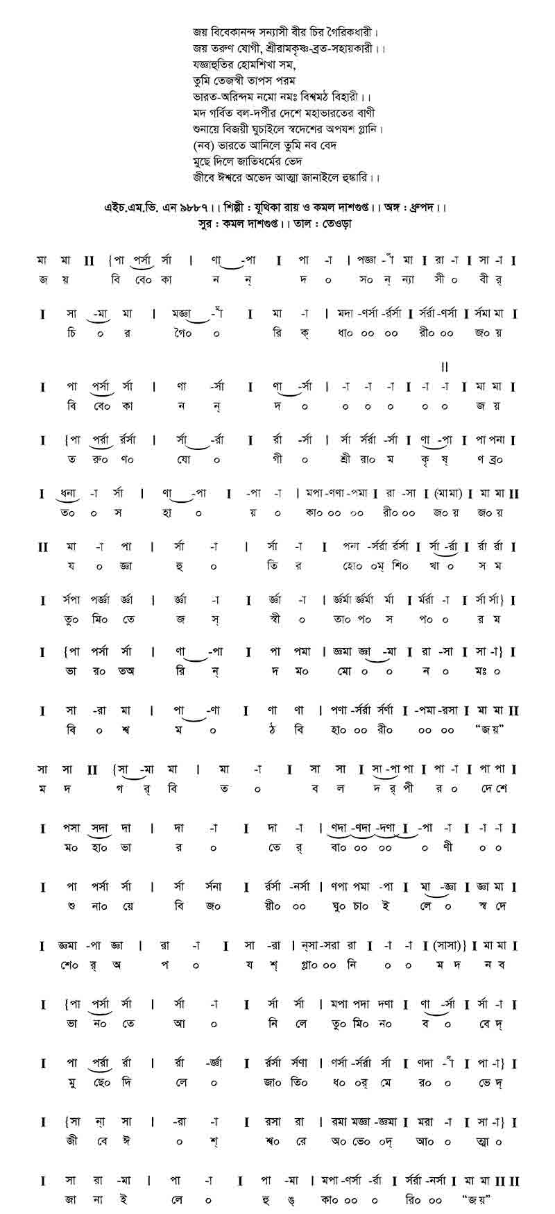 ভারত-অরিন্দম নমো নমঃ বিশ্বমঠ বিহারী।।