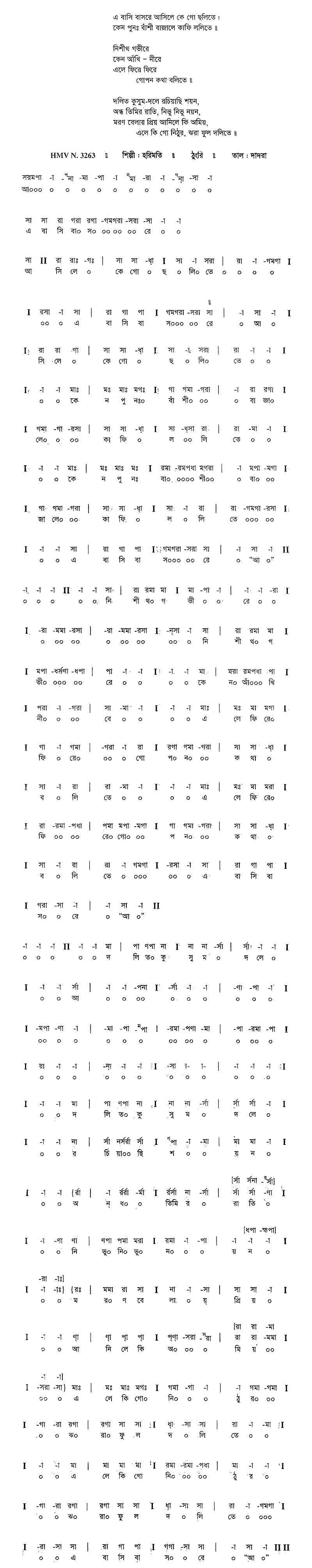 কেন পুন বাঁশি বাজালে কাফি ললিতে।।