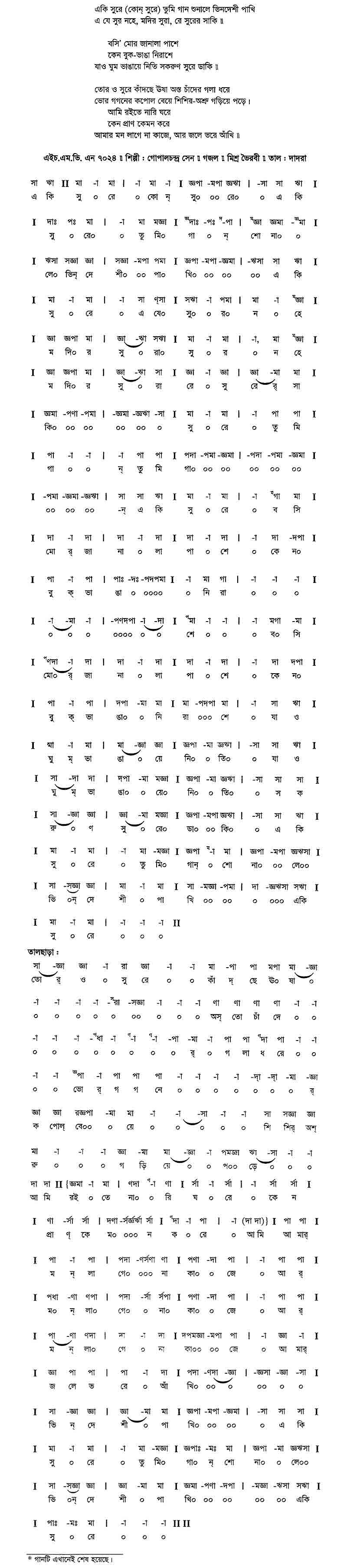 রাগঃ রমলা (নজরুলসৃষ্ট)