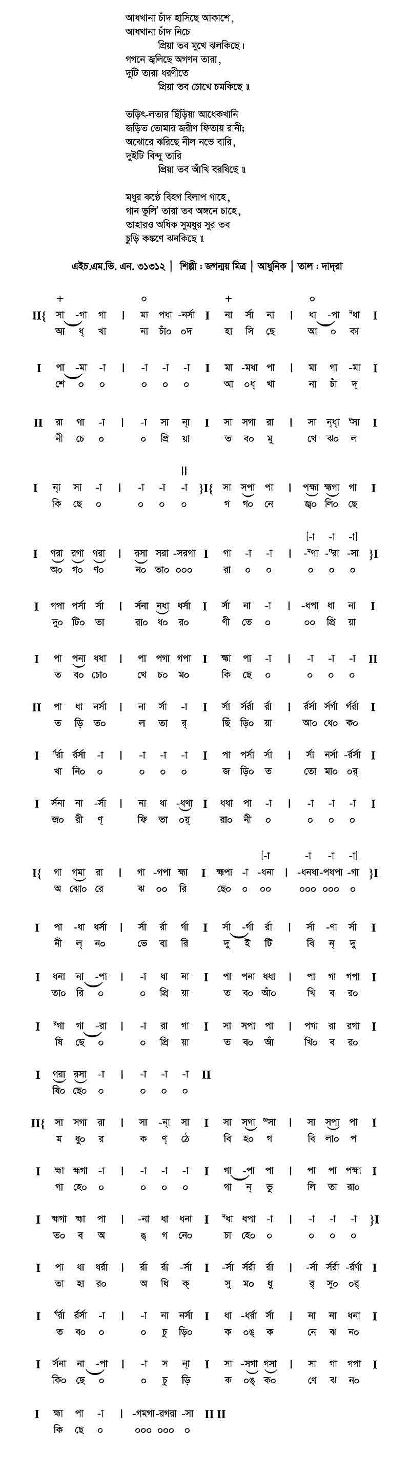 আধখানা চাঁদ হাসিছে আকাশে