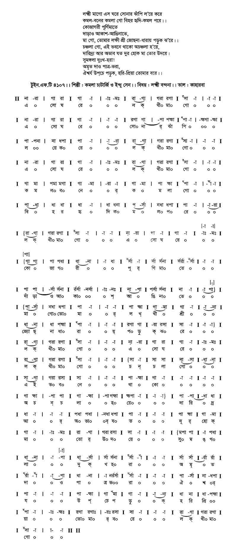 কমল-বনের কমলা গো বিহর হৃদি-কমল পরে।।