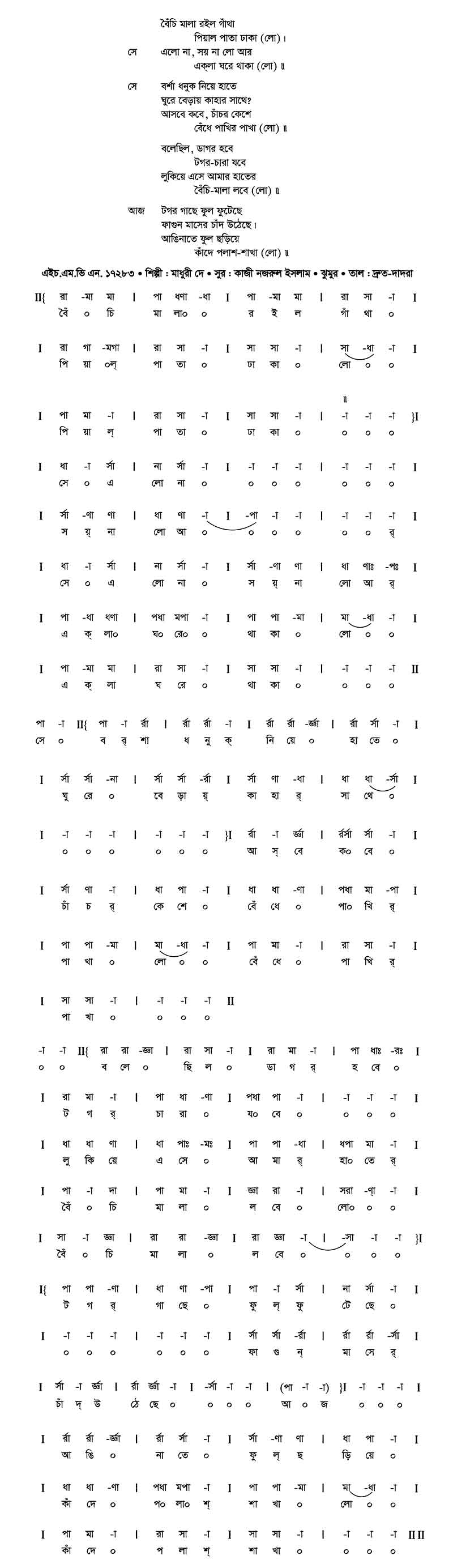 এ কোথায় আসিলে হায়, তৃষিত ভিখারি। হায়, পথ-ভোলা পথিক, হায়, মৃগ মরুচারী।। মোর ব্যথায় চরণ ফেলে চির-দেবতা কি এলে, হায়, শুকায়েছে যবে মোর নয়নে নয়ন-বারি।। তোমার আসার পথে প্রিয় ছিলাম যবে পরান পাতি’, সেদিন যদি আসিতে নাথ হইতে ব্যথার ব্যথী। ধোওয়ায়ে নয়ন-জলে পা মুছাতাম আকুল কেশে আজ কেন দিন-শেষে এলে নাথ মলিন বেশে! হায়, বুকে ল’য়ে ব্যথা আসিলে ব্যথা-হারী।। স্মৃতির যে শুকানো মালা যতনে রেখেছি তুলি’ ছুঁয়ে সে হার ঝরায়ো না ম্লান তার কুসুমগুলি, হায়, জ্বলুক বুকে চিতা, তা’য় ঢেলো না আর বারি।।