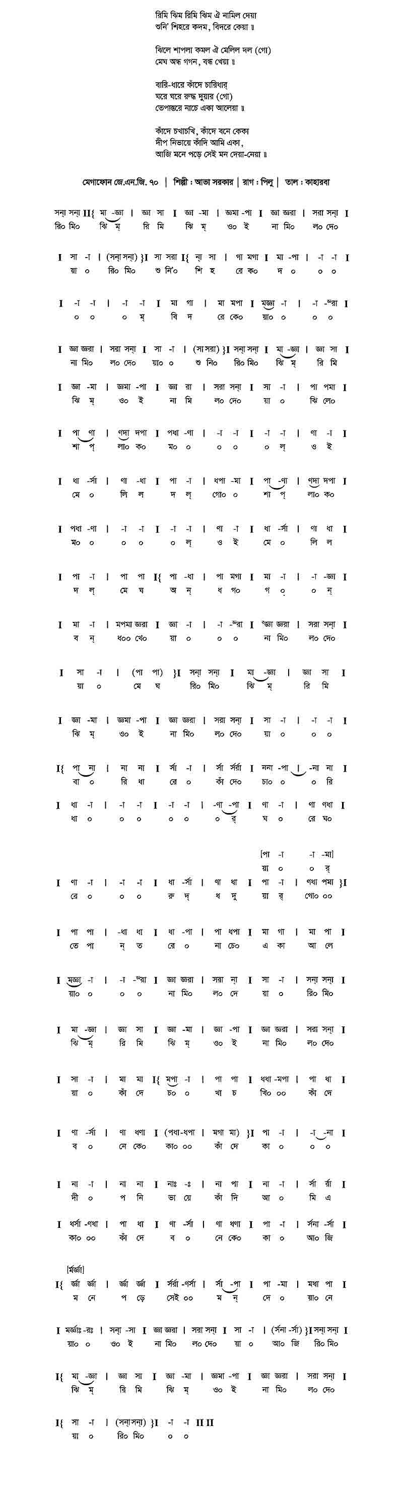 রিমি ঝিম্ রিমি ঝিম্ ঐ নামিল দেয়া।