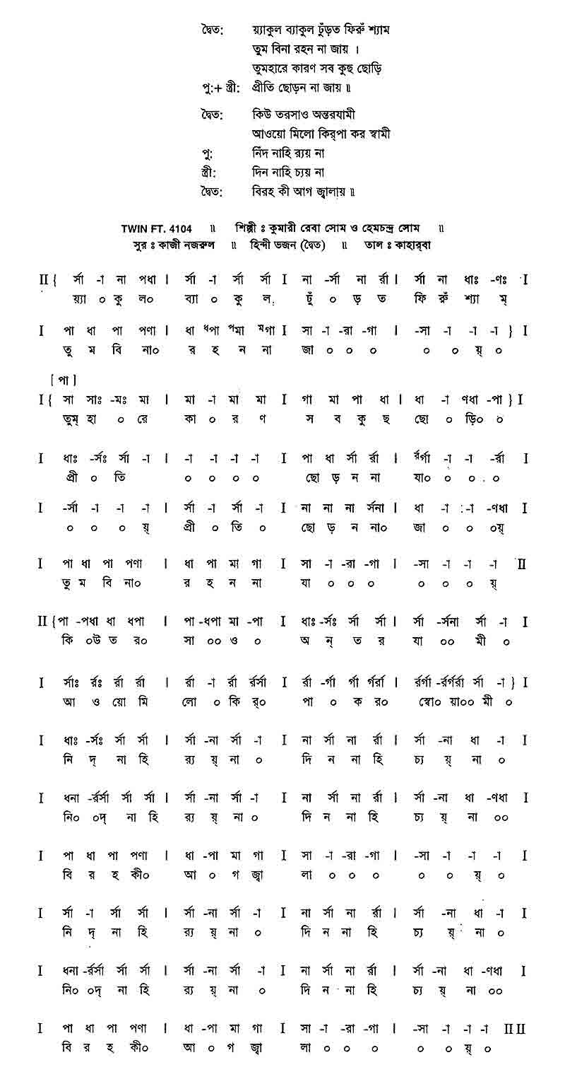 আকুল ব্যাকুল ঢুঁড়ত ফিঁরু শ্যাম তুম বিনা রহন না জায়।