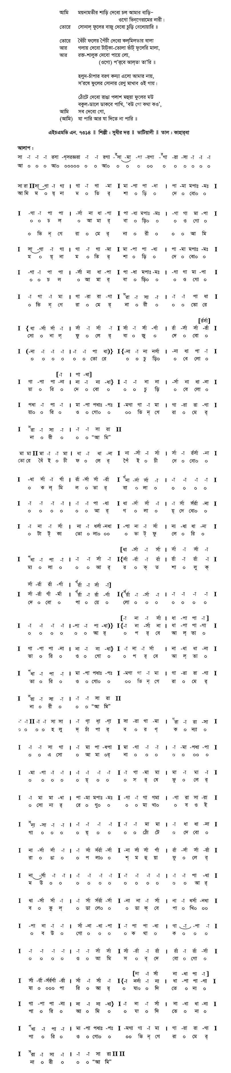 হলুদ-চাঁপার বরণ কন্যা এসো আমার নায়