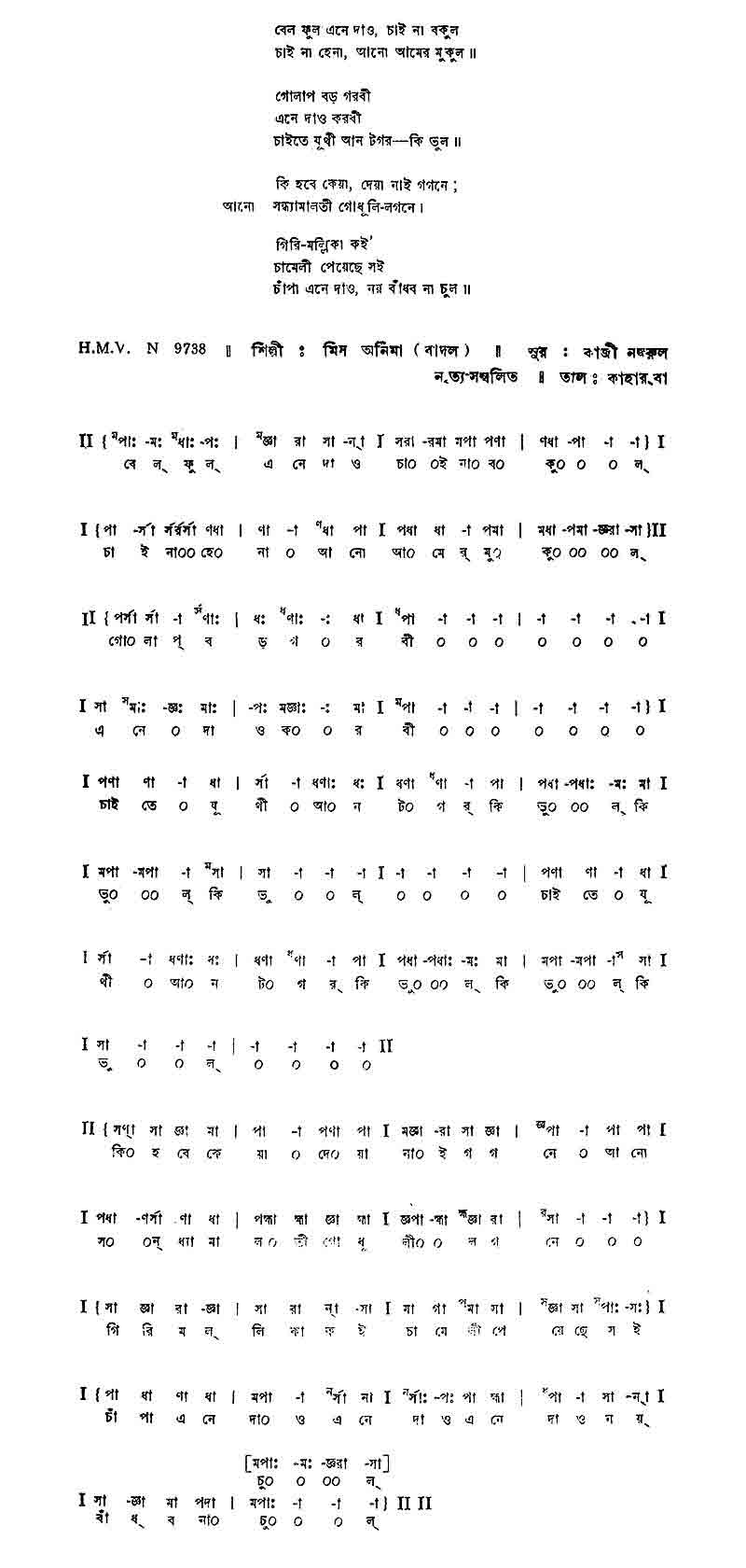 বেল ফুল এনে দাও চাই না বকুল