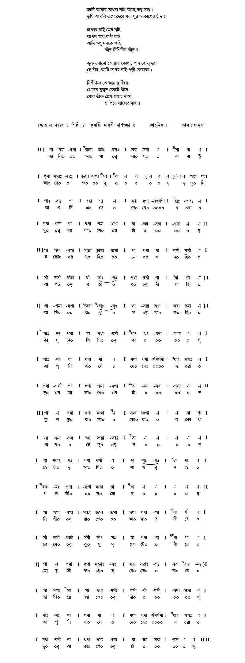 জানি আমার সাধনা নাই আছে তবু সাধ।