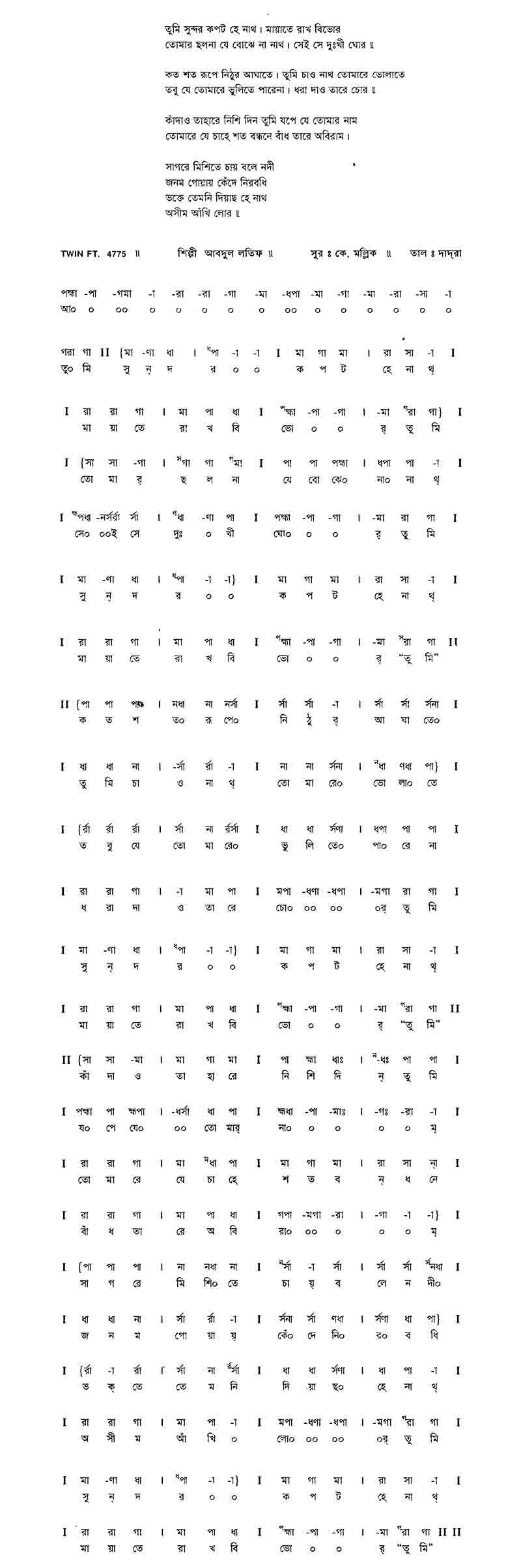 তুমি সুন্দর কপট হে নাথ