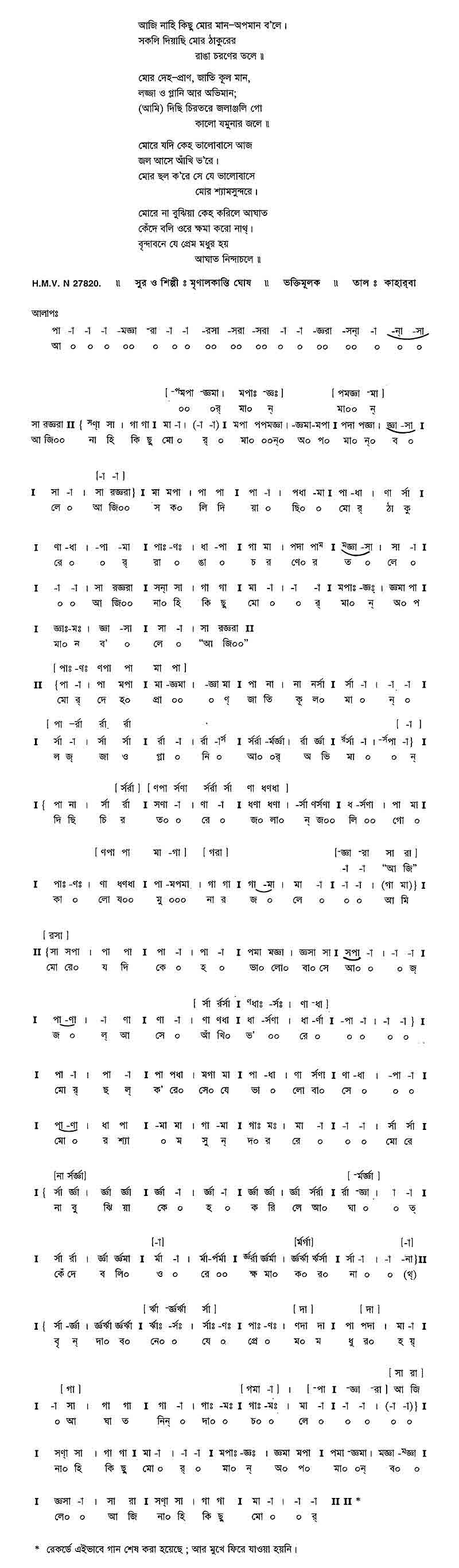 সকলি দিয়াছি মোর ঠাকুরের রাঙা চরণের তলে॥