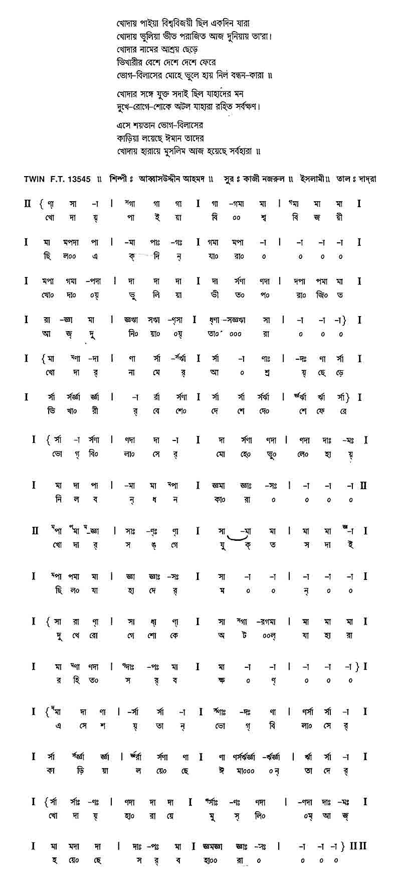 খোদায় ভুলিয়া ভীত পরাজিত আজ দুনিয়ায় তারা।।