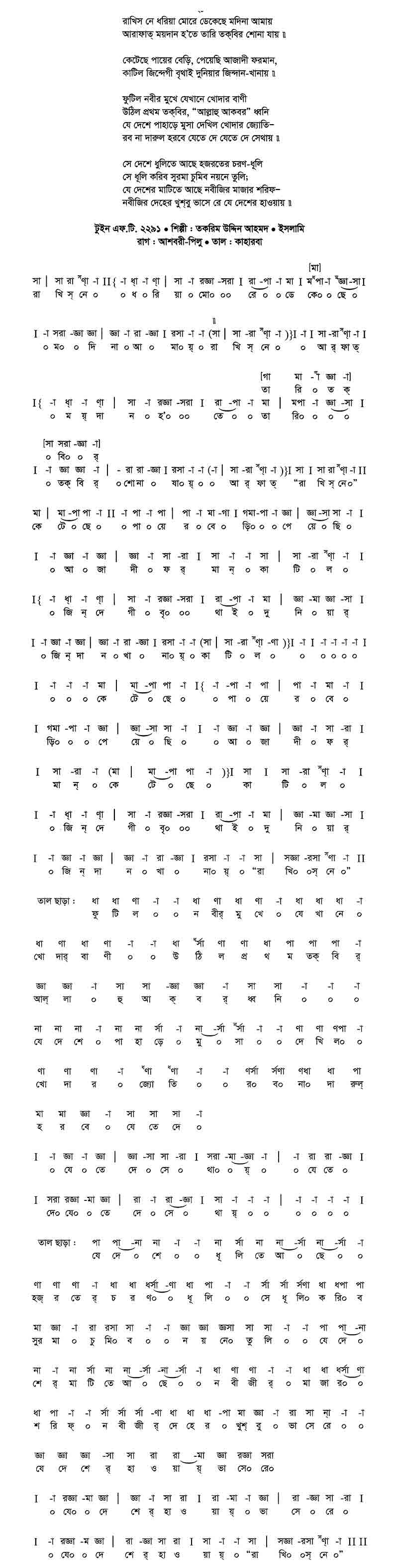 রাখিস্‌নে ধরিয়া মোরে, ডেকেছে মদিনা আমায়।