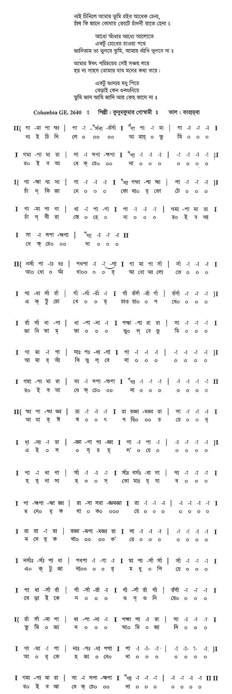 ২। বনগীতিঃ সিন্ধু-ভৈরবী, তালঃ কাহার্বা
