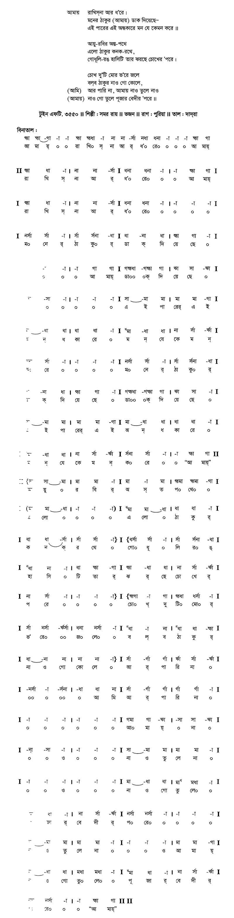 মম বাঁশরীর তানে পাশরি’।