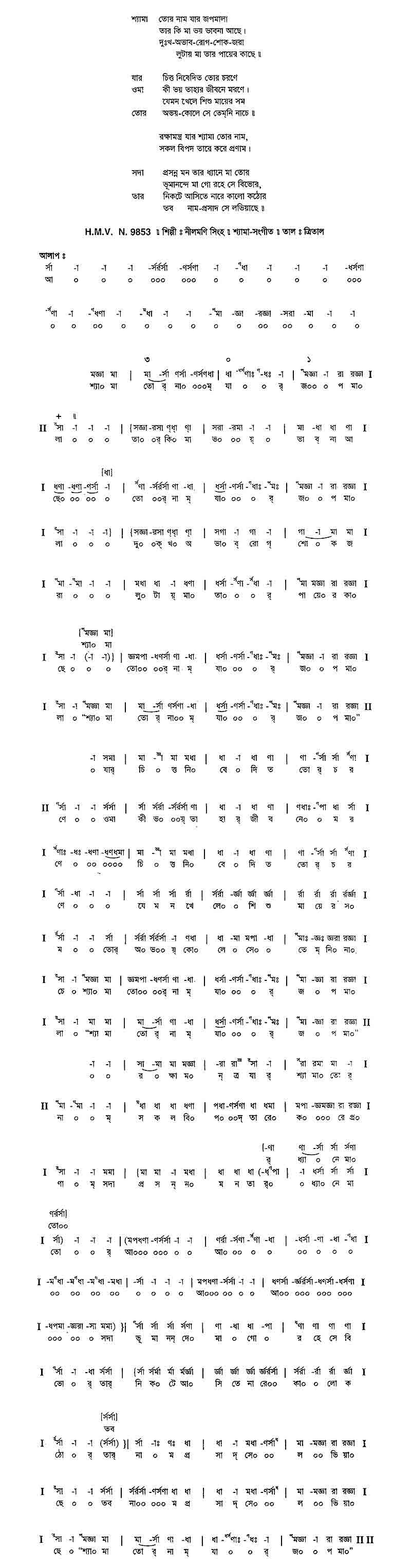 শ্যামা তোর নাম যার জপমালা তার কি মা ভয় ভাবনা আছে।