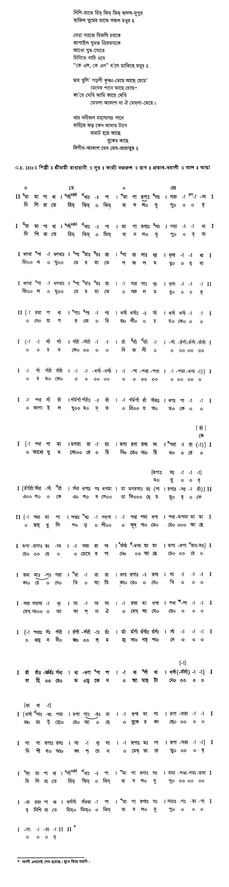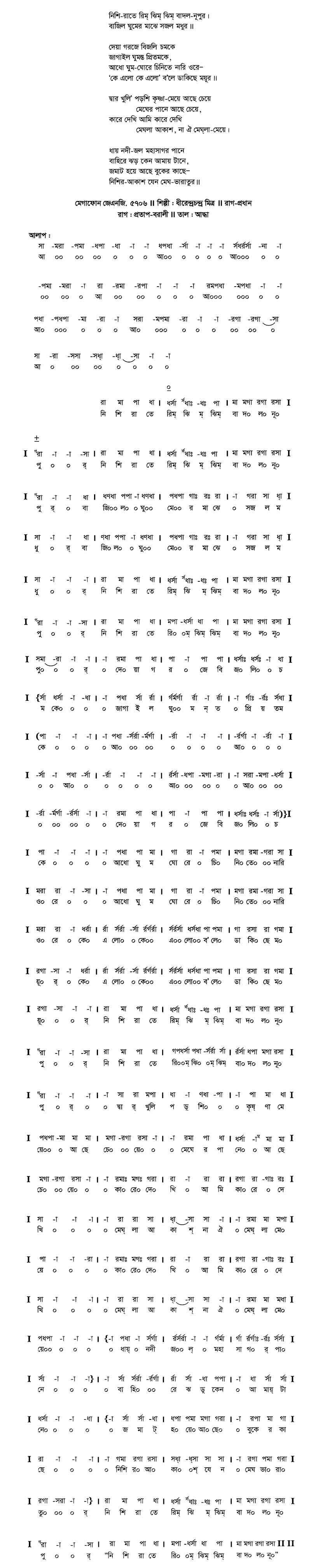 নিশি-রাতে রিম ঝিম ঝিম বাদল-নূপুর