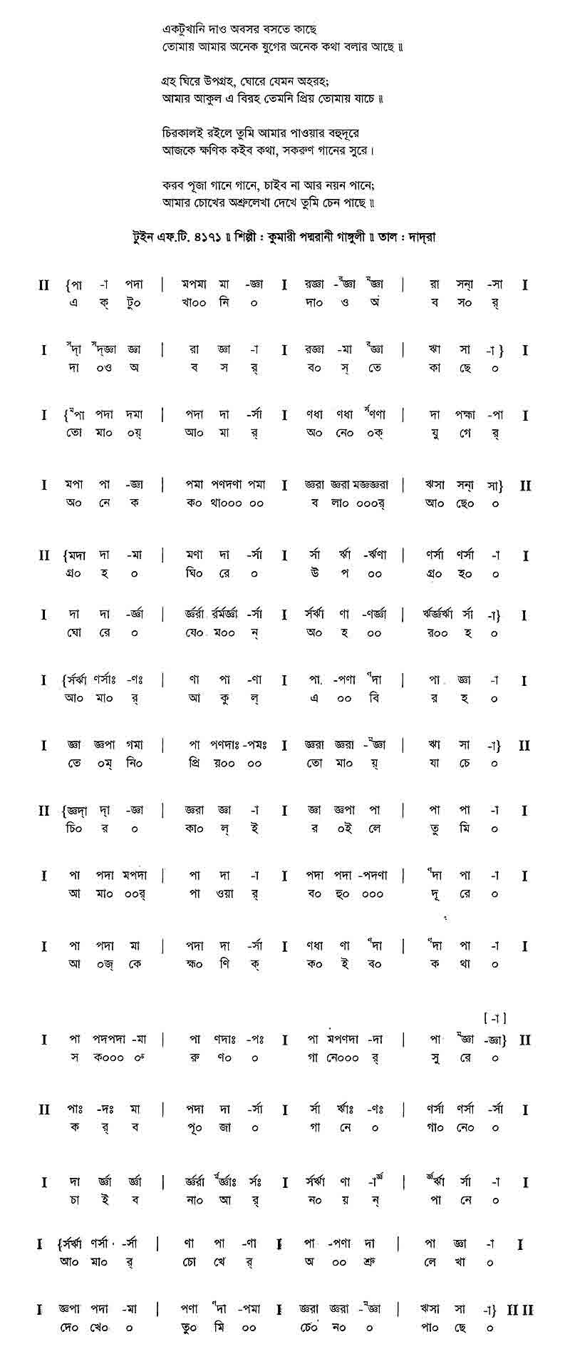 বাদ্ল হাওয়ায় তাল্‌বনা ঐ বাজায় চটুল্ দাদ্‌রা তাল,