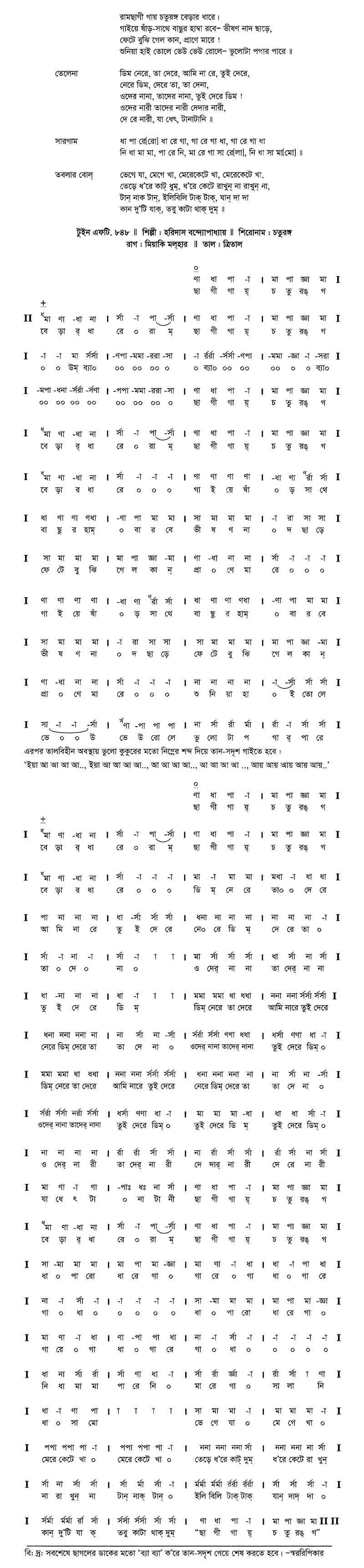 সরগম:	 	ধ প র ধ র গ, গ র গ ধ, গ র গ ধ,