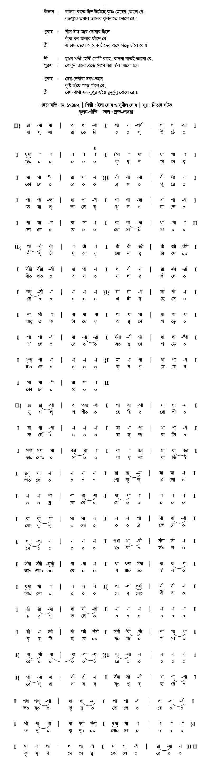 বাদলা রাতে চাঁদ উঠেছে কৃষ্ণ মেঘের কোলে রে।