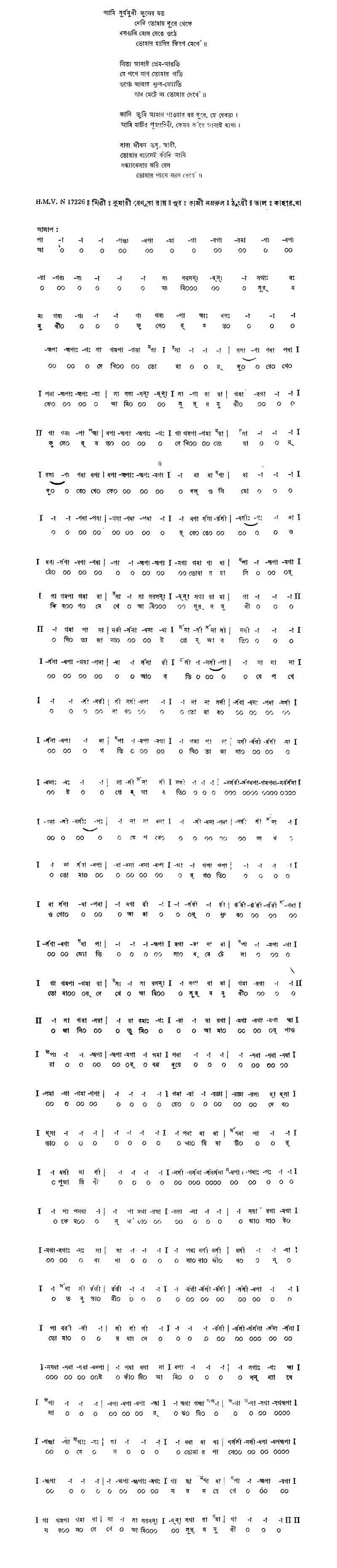 গোঠের রাখাল, বলে দে রে কোথায় বৃন্দাবন। (যথা) রাখাল–রাজা গোপাল আমার খেলে অনুক্ষণ।। (যথা) দিনে রাতে মিলন–রাসে চাঁদ হাসে রে চাঁদের পাশে, (যা’র) পথের ধূলায় ছড়িয়ে আছে শ্রীহরি–চন্দন।। (যথা) কৃষ্ণ–নামের ঢেউ ওঠে রে সুনীল যমুনায়, (যা’র) তমাল–বনে আজো মধুর কানুর নূপুর শোনা যায়। আজো যাহার কদম ডালে বেণু বাজে সাঁঝ–সকালে, নিত্য লীলা করে যথা মদন–মোহন।।