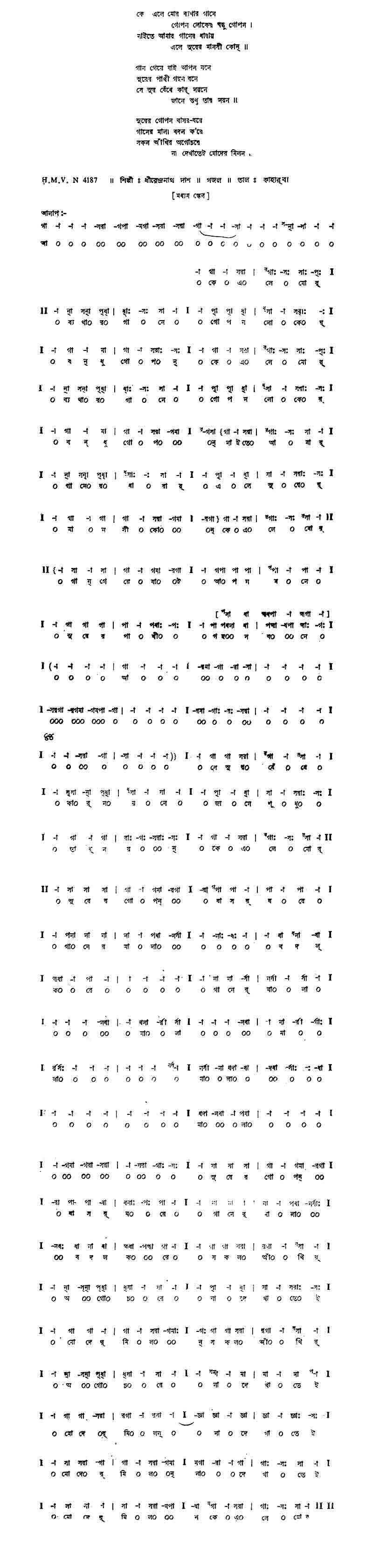 কে এলে মোর ব্যথার গানে গোপন-লোকের বন্ধু গোপন