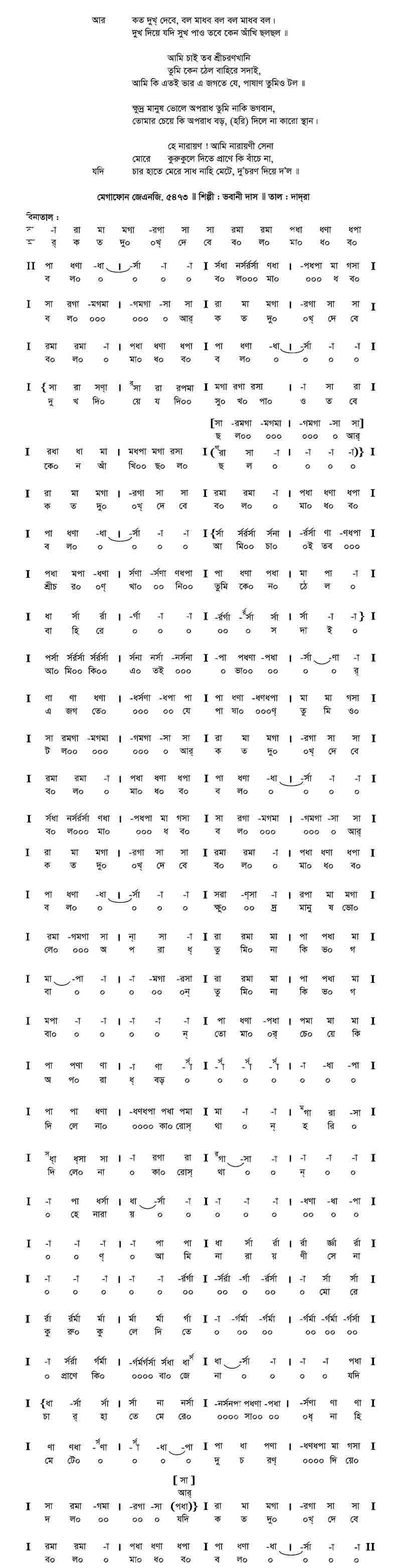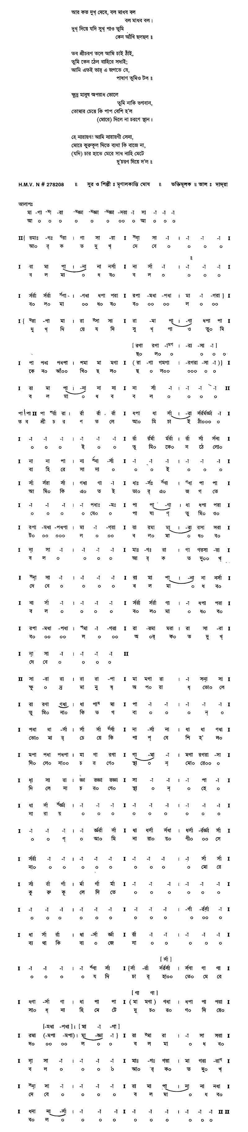 আর কত দুখ্ দেবে, বল মাধব বল বল মাধব বল।