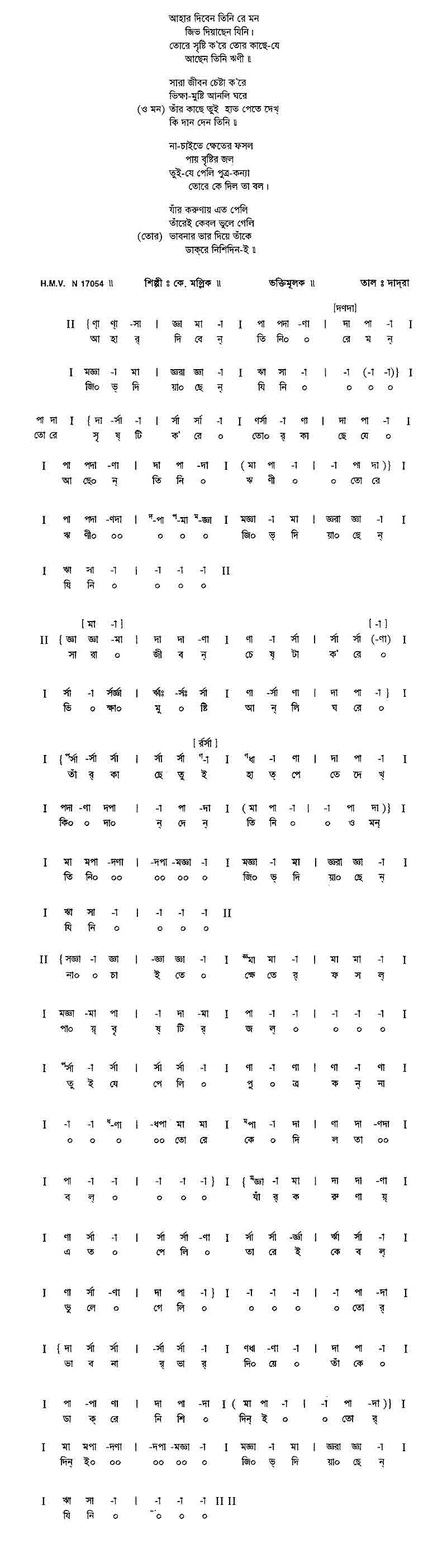 আহার দেবেন তিনি রে মন জিভ দিয়াছেন যিনি।