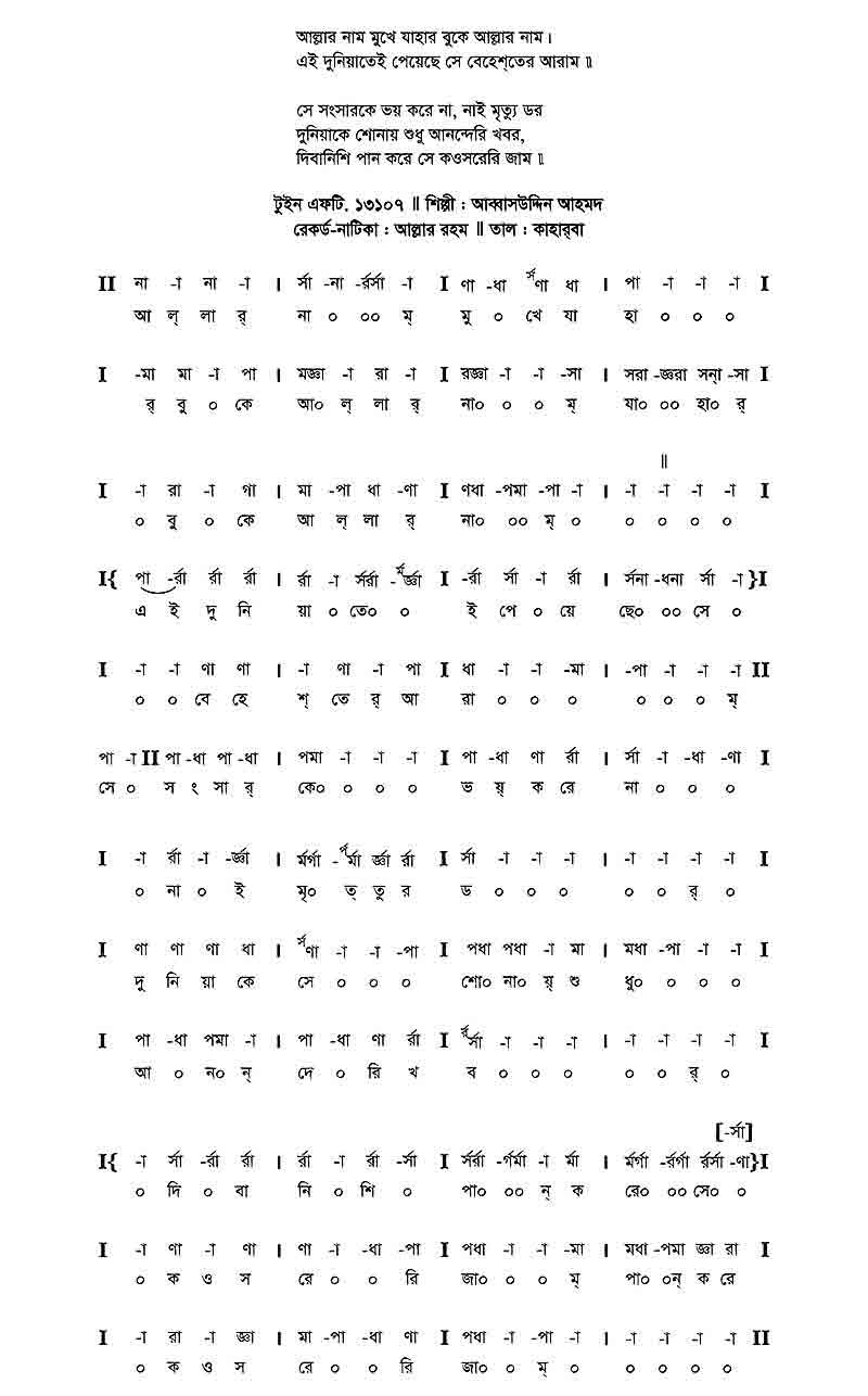 আল্লার নাম মুখে যাহার বুকে আল্লার নাম।