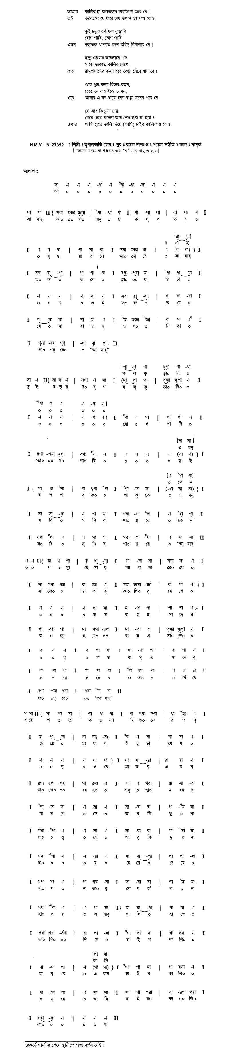 আমার কালিবাঞ্ছা কল্পতরুর ছায়াতলে আয় রে