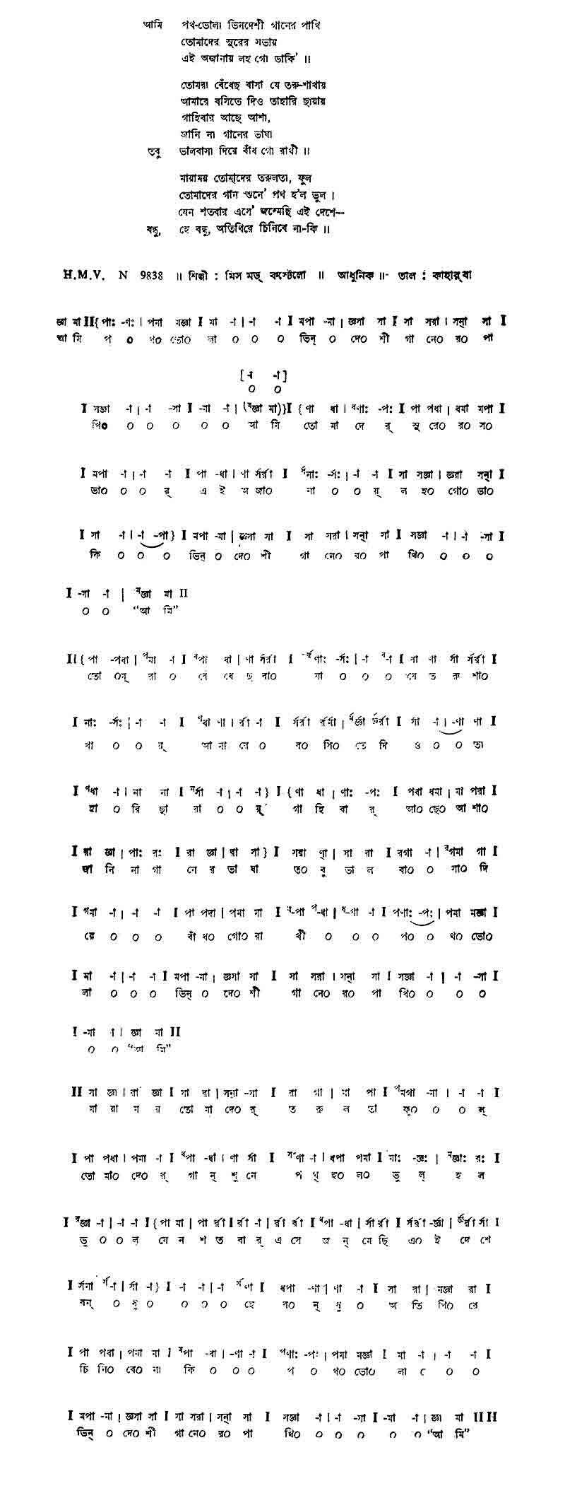 আমি	পথ-ভোলা ভিনদেশি গানের পাখি