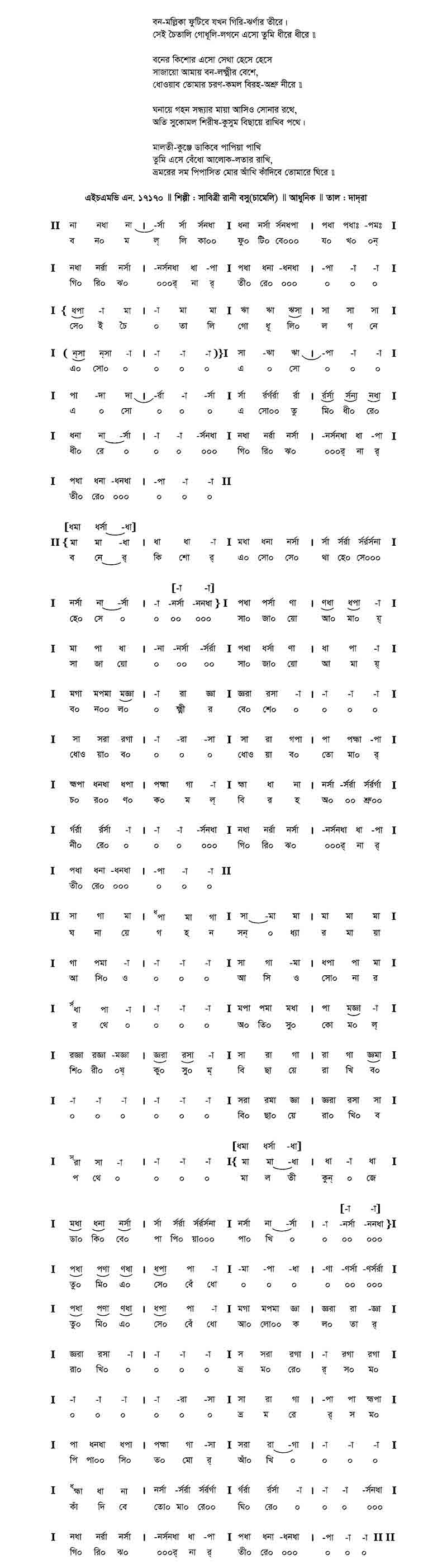 বন-মল্লিকা ফুটিবে যখন গিরি-ঝর্নার তীরে