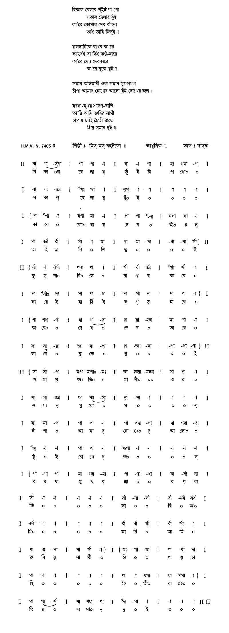 বিকাল বেলার ভুঁইচাঁপা গো সকাল বেলার যুঁই