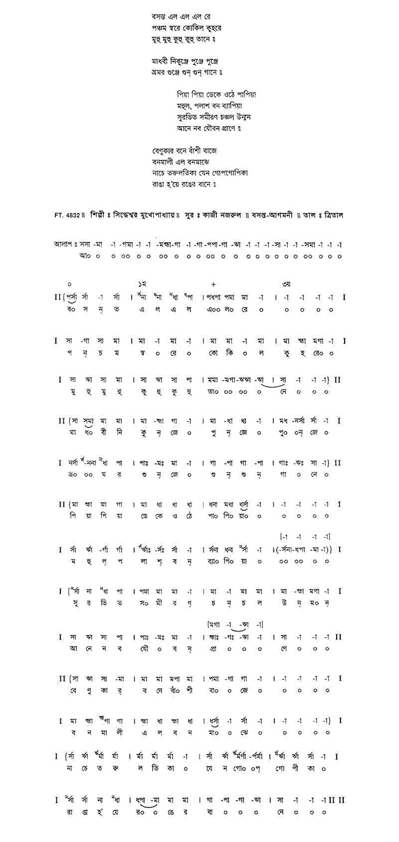 Nazrulgeeti.org is the largest portal in the world about Nazrulgeeti. Anything and everything about Nazrulgeeti will be found in this portal. All lyrics, used raag and taal, audio/video, swaralipi and unknown stories behind the song, everything will be available here. The collection is growing every day. Be with us and help spread Nazrulgeeti worldwide.