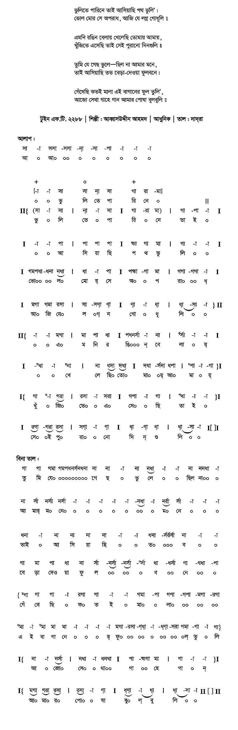 ভুলিতে পারিনে তাই আসিয়াছি পথ ভুলি