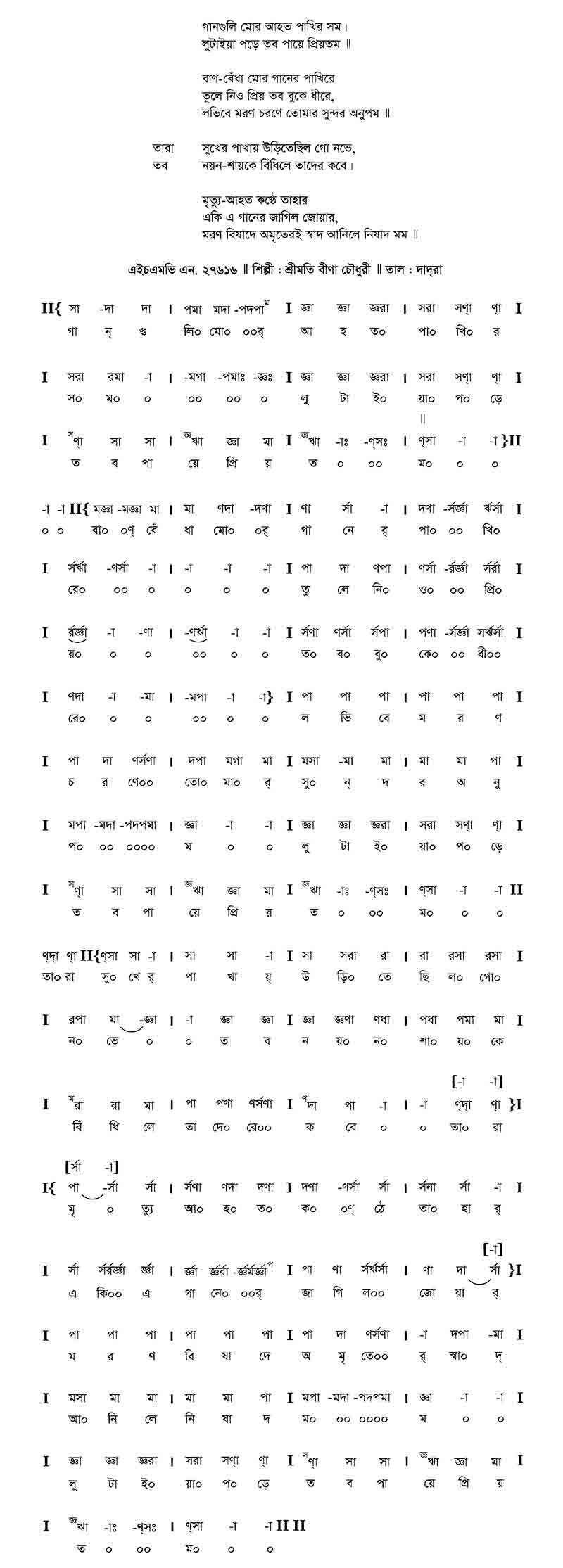 বাণ–বেঁধা মোর গানের পাখিরে