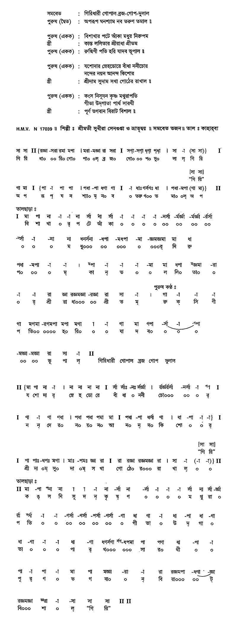 গিরিধারী গোপাল ব্রজ গোপ দুলাল