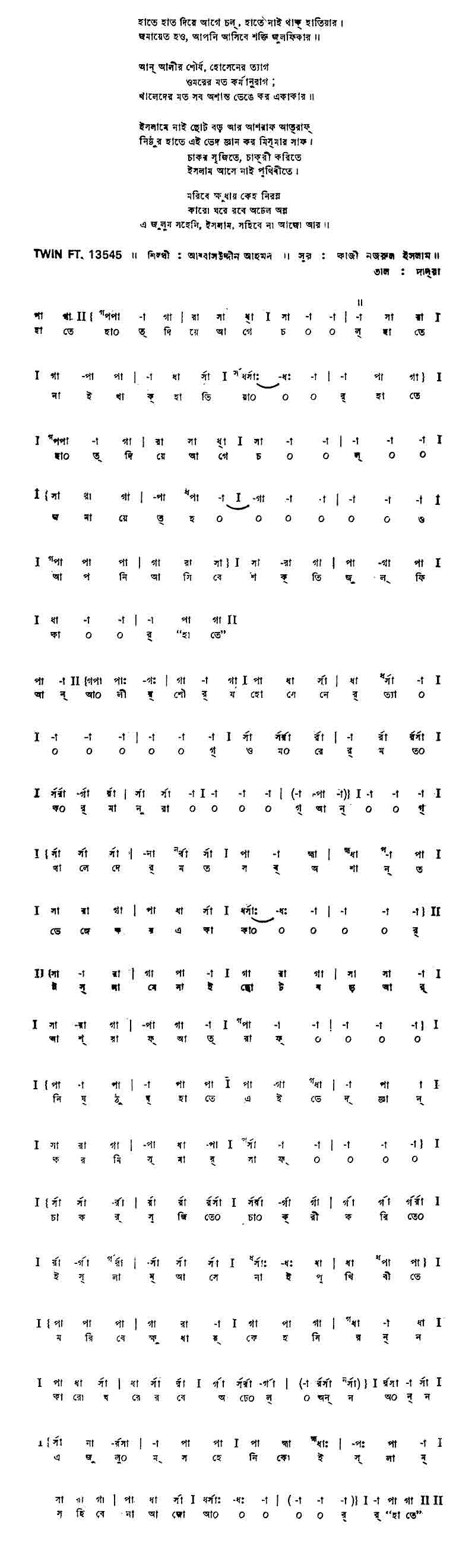 সৃষ্টি যাঁর মুসলিম রে ভাই হিন্দু সৃষ্টি তাঁরি