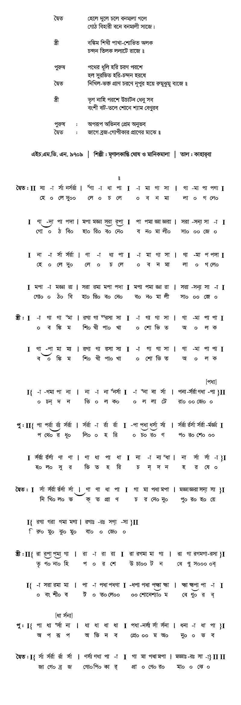 হেলে দুলে চলে বন-মালা গলে গোঠ-বিহারী বনে বনমালী সাজে।