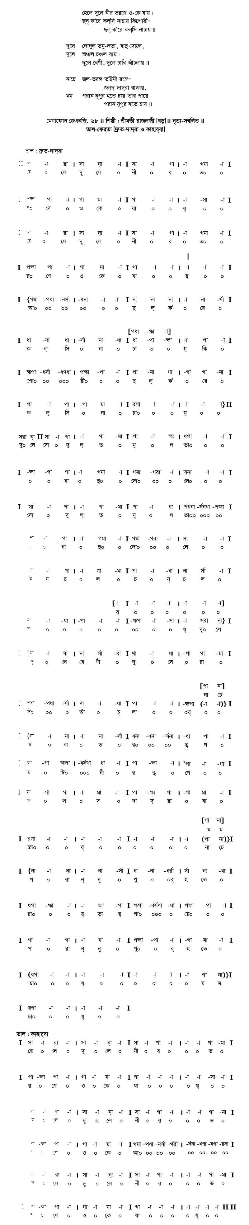 নাচে জল-তরঙ্গে তটিনী রঙ্গে জলদ্ দাদ্‌রা বাজায়,