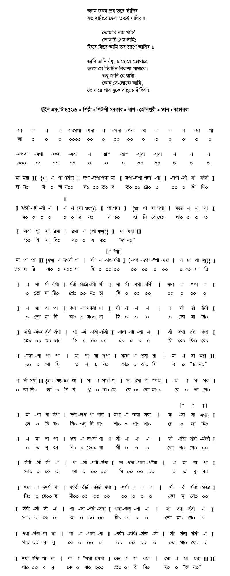 জনম জনম তব তরে কাঁদিব