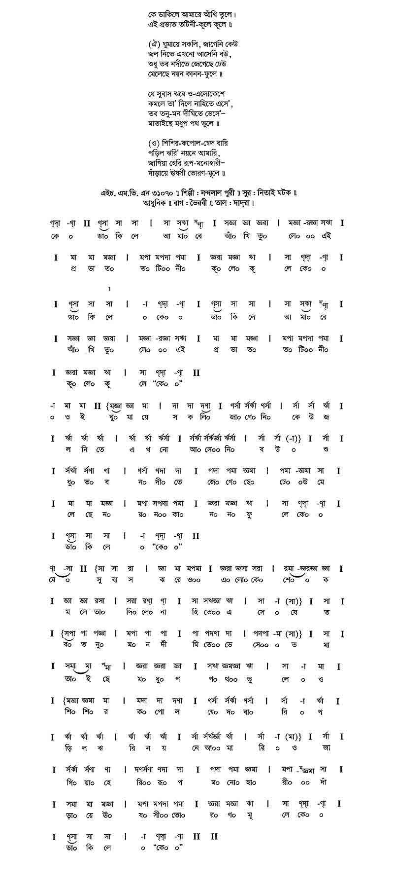 কে	ডাকিলে আমারে আঁখি তুলে'।