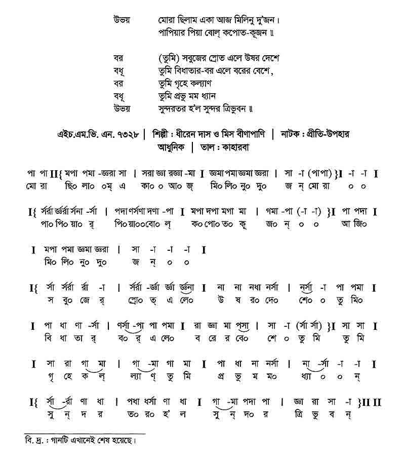 পাপিয়ার পিয়া বোল্ কপোত-কূজন।।