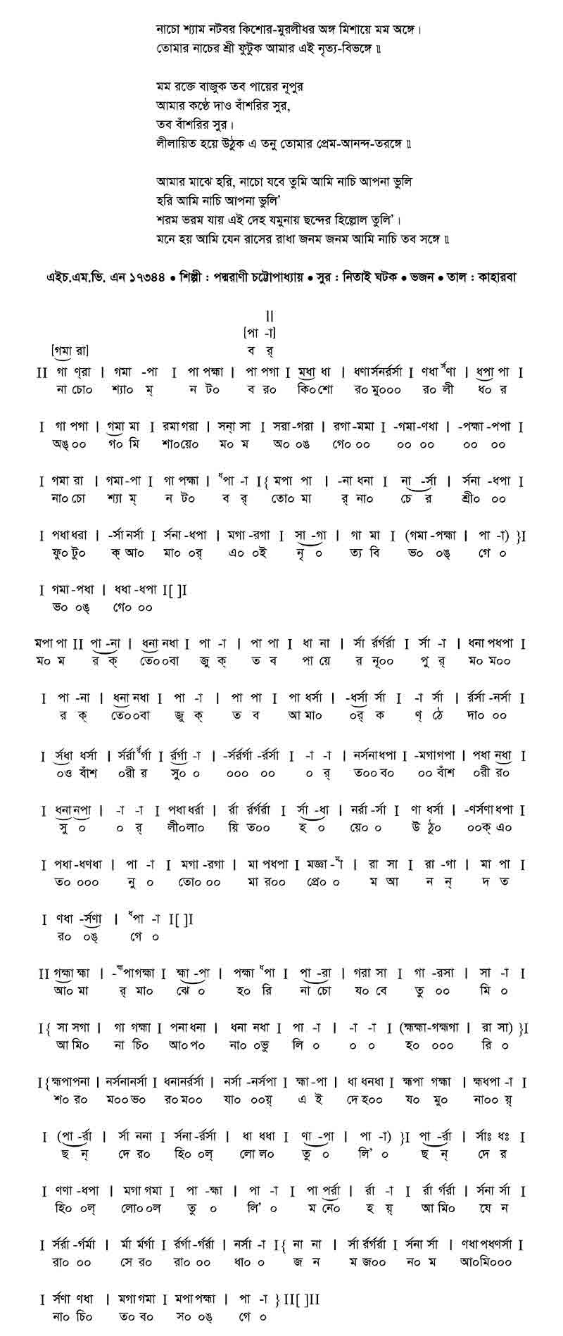 নাচো শ্যাম-নটবর কিশোর-মুরলীধর অঙ্গ মিশায়ে মম অঙ্গে।