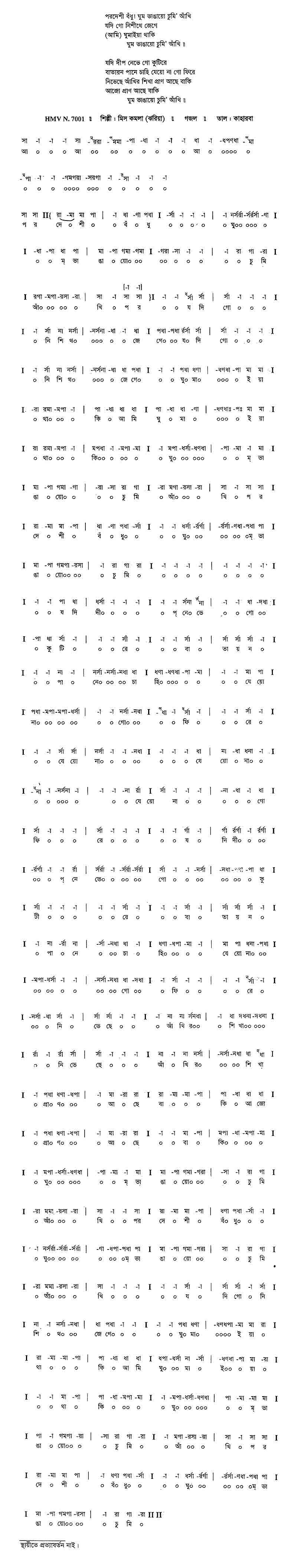 পরদেশী বঁধু ঘুম ভাঙায়ো চুমি' আঁখি