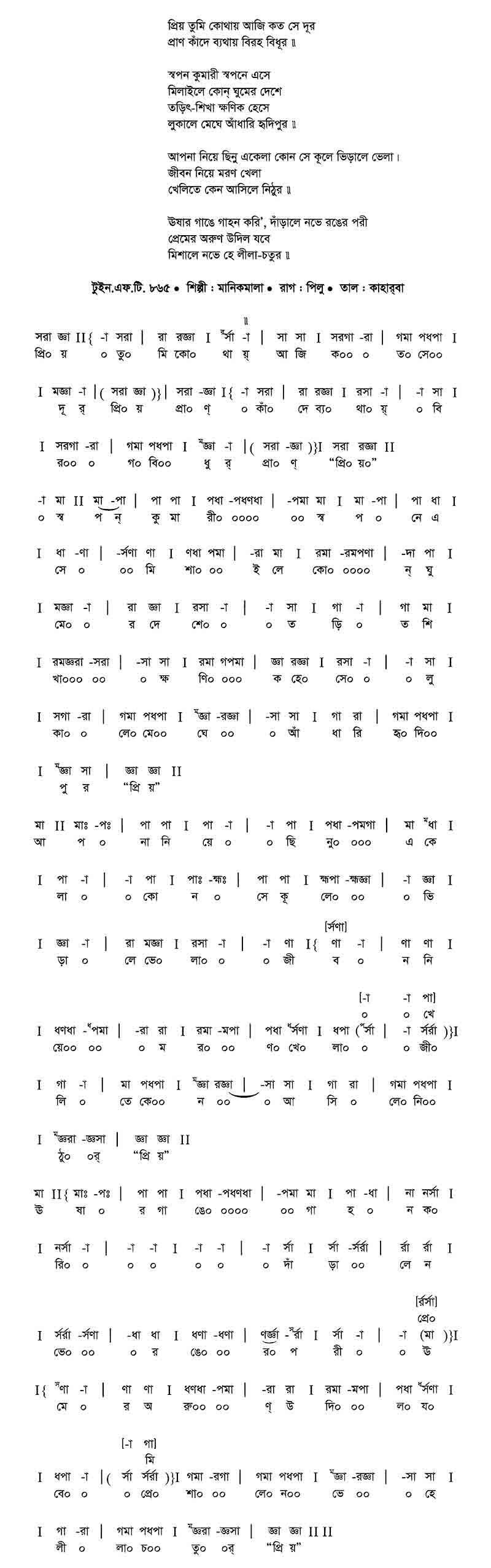 প্রিয় তুমি কোথায় আজি কত সে দূর