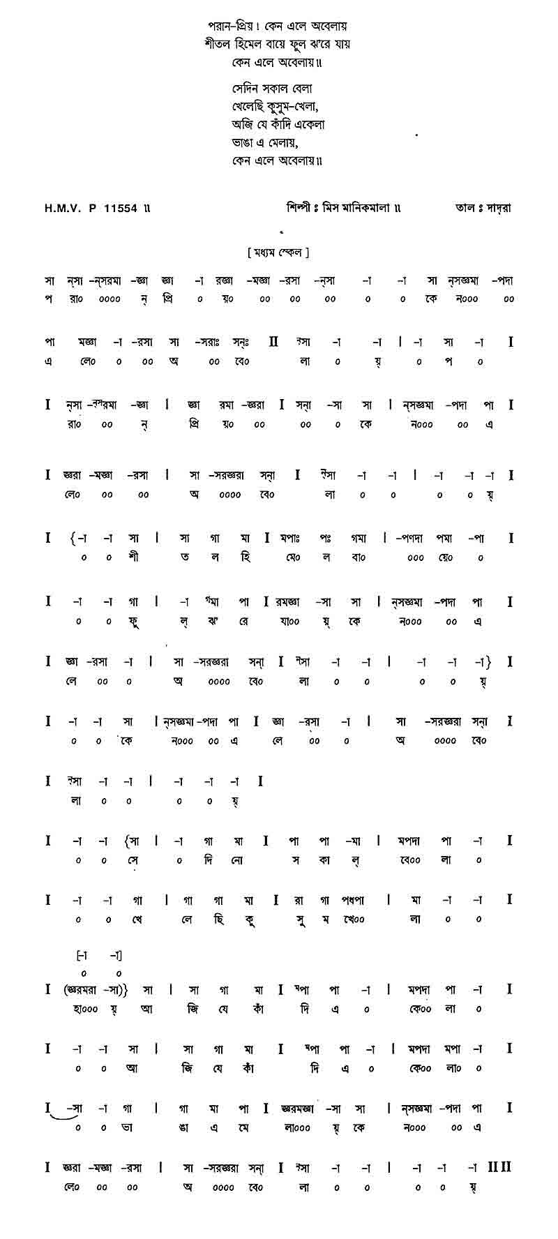 তোমার বেণীর বন্ধে গো		মরিতে চায় সুরের বকুল