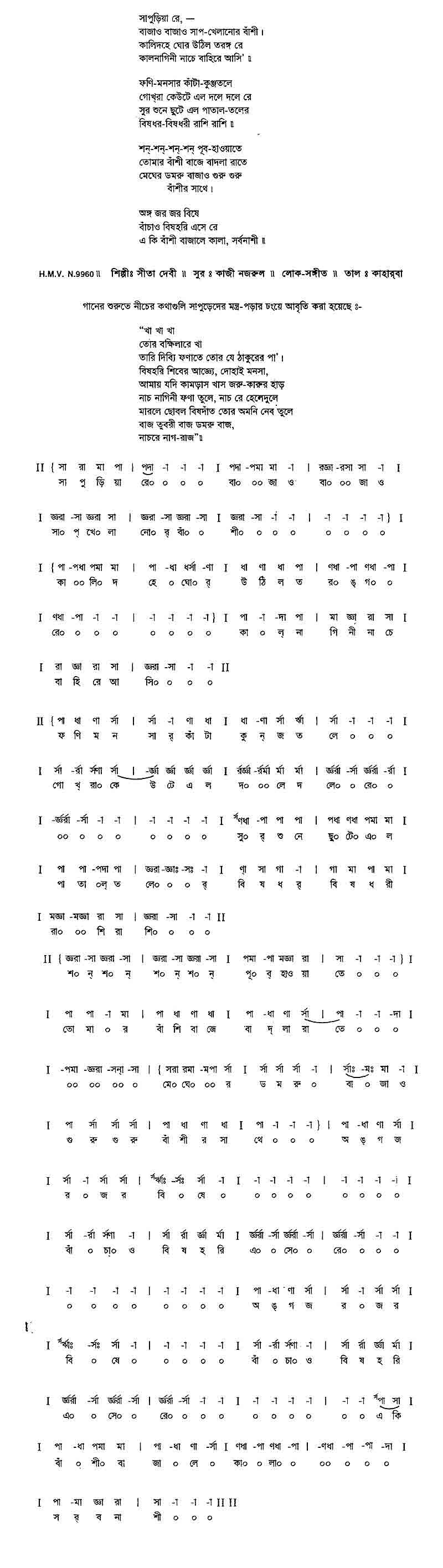 এ কি বাঁশি বাজালো কালা, সর্বনাশী।।