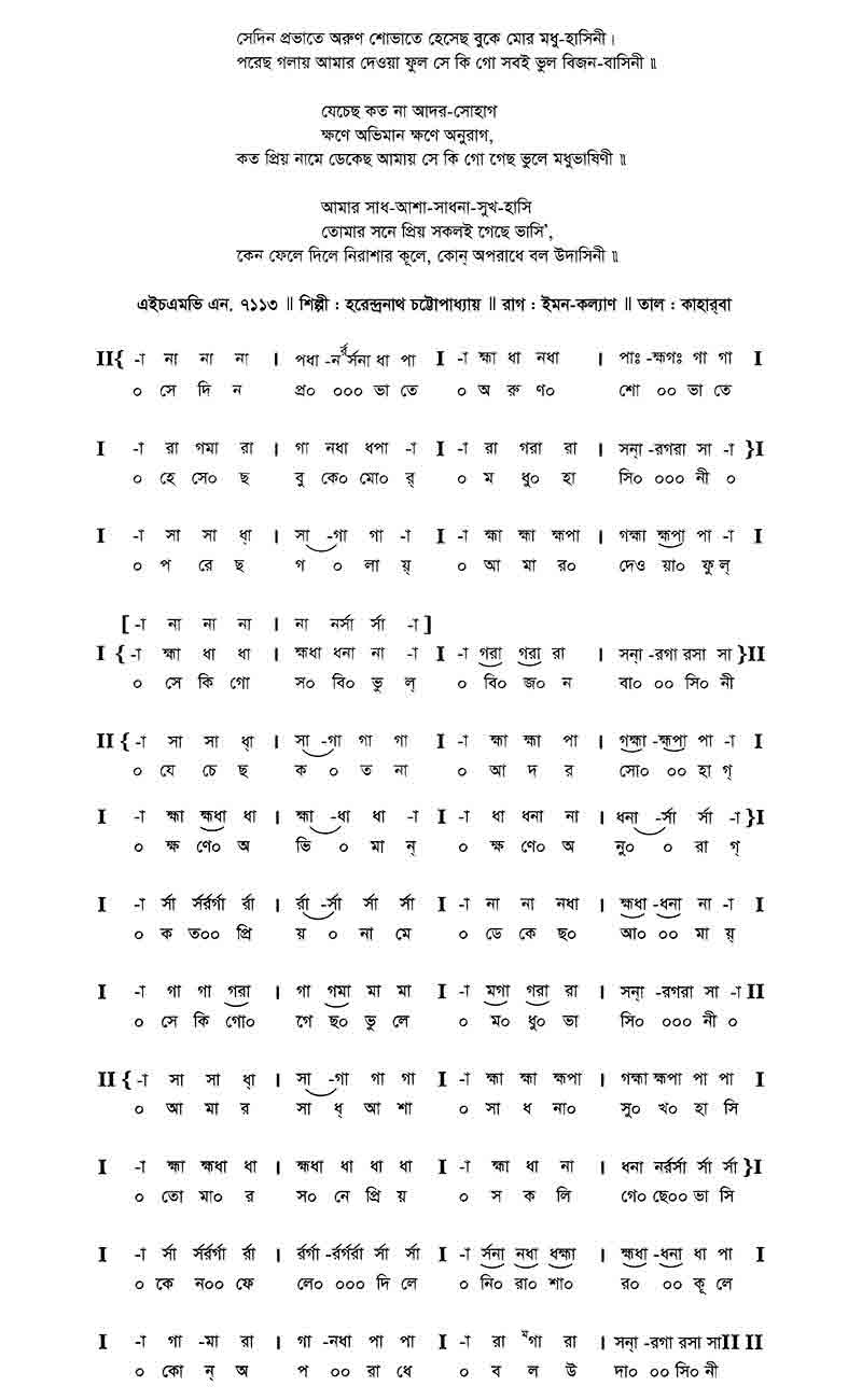 সেদিন প্রভাতে অরুণ শোভাতে হেসেছ বুকে মোর মধু-হাসিনী।
