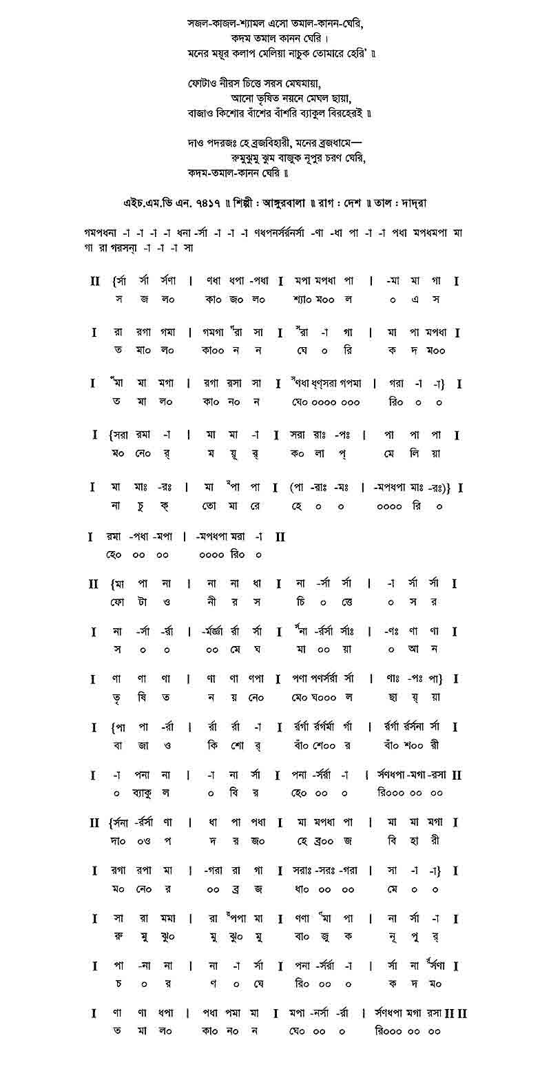 সজল-কাজল-শ্যামল এসো তমাল-কানন-ঘেরি