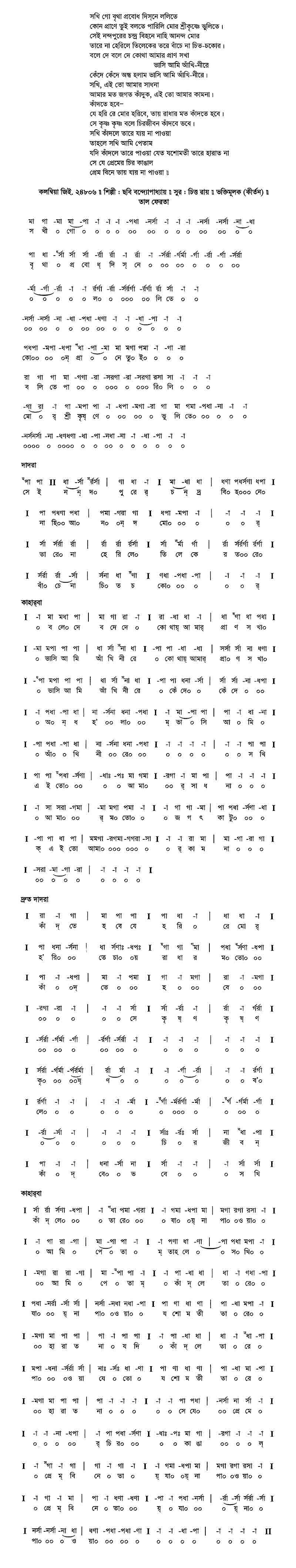 সখি গো বৃথা প্রবোধ দিস্‌নে ললিতে